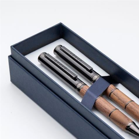 The Tom Hessin Revolution Collection Rustic Ballpoint Pen & Mechanical Pencil Set is crafted with precision techniques and raw materials that honour Tom Hessin’s industrial past. Warm walnut barrels contrast with cool gunmetal accents, creating a striking study in texture and tone — a perfect expression of modern craftsmanship meeting heritage inspiration.
